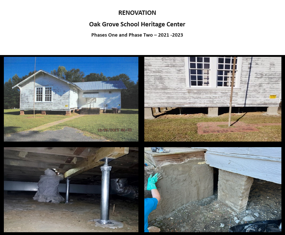 Phase One finally began on the school during the spring of 2021, thanks to grants and donations from The Alabama Historical Commission, Robertson Bank, Walmart in Demopolis, AL and non profits like Oak Grove Baptist Church, and personal contributions.