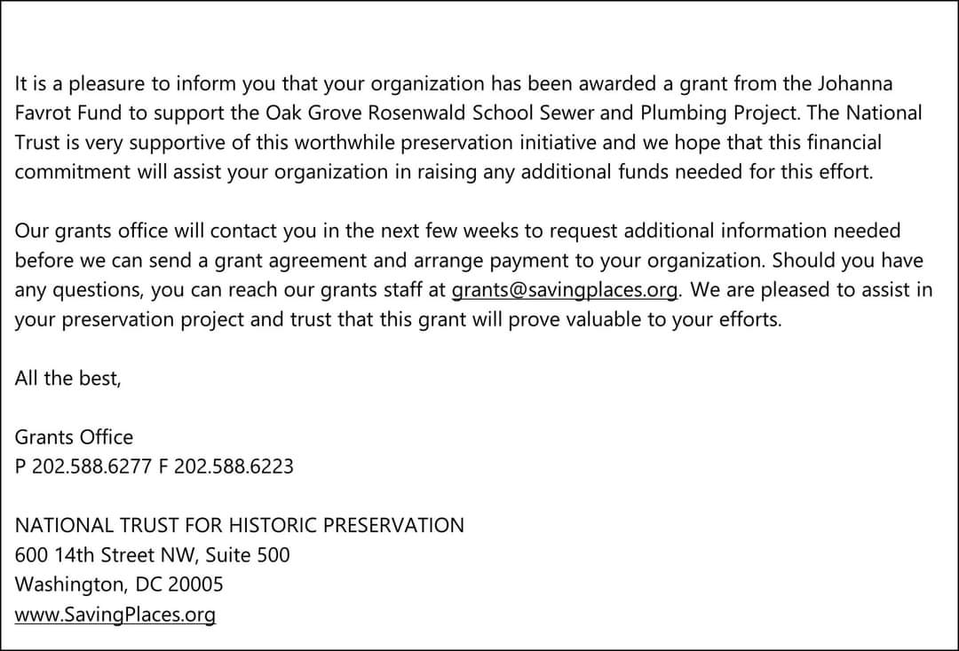 The grant funds will be used to start the second stage of the renovation which will be restoring and repairing the school structural issues such as foundation stabilization, and addressing all other foundation issues.